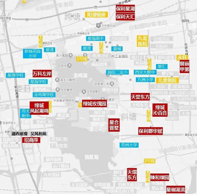 「晋墅」落子园区双湖正核——东延路南、西华林街东,直面独墅湖一线湖景,西眺金鸡湖大酒店,南侧为无遮挡绿地,堪称“双湖半岛秘境”。地块容积率仅1.02,是苏州近年罕见的低密宅地。